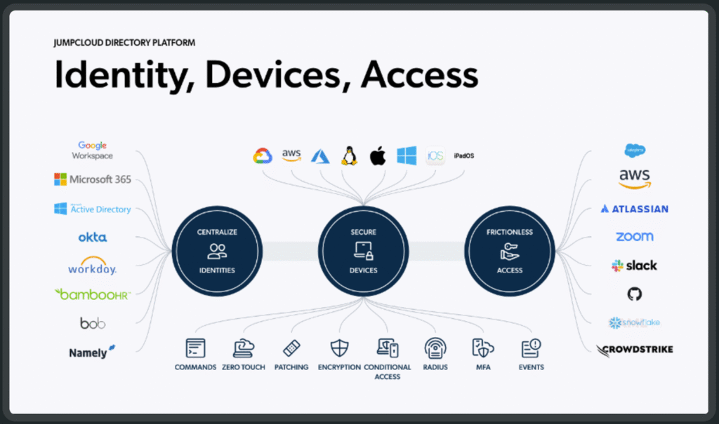 Automatize o ciclo de vida de usuários: provisão, sincronização e revogação centralizada. Integre Google Workspace, Microsoft 365, AD e sistemas de RH com MFA e SSO nativos.